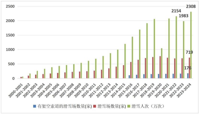 统计中国滑雪场数量和滑雪人数