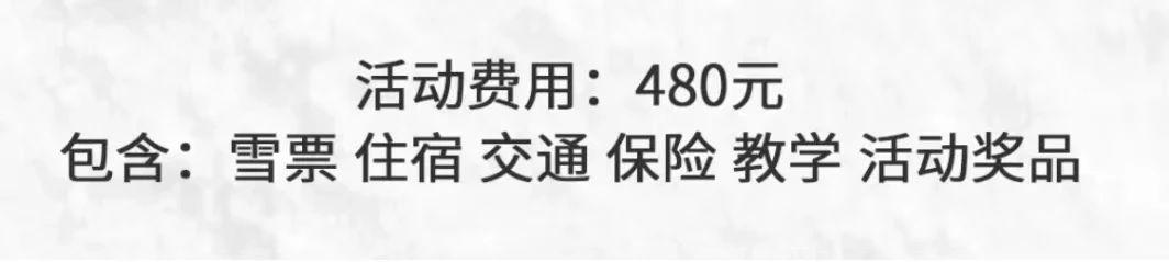 480元-包两天雪票,还有两晚住宿、来回交通、教学保险等配套费用。这样,除了自己带雪具或者租雪具,其他一切都得到了照顾。