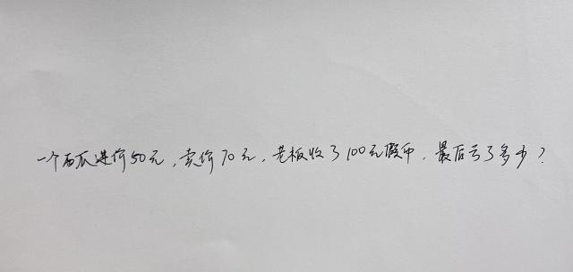 继续把假货币、零钱和成本利润综合考虑了这些复杂因素,终于想通了老板的损失。 80 元。( 正确答案是 80 元 )
