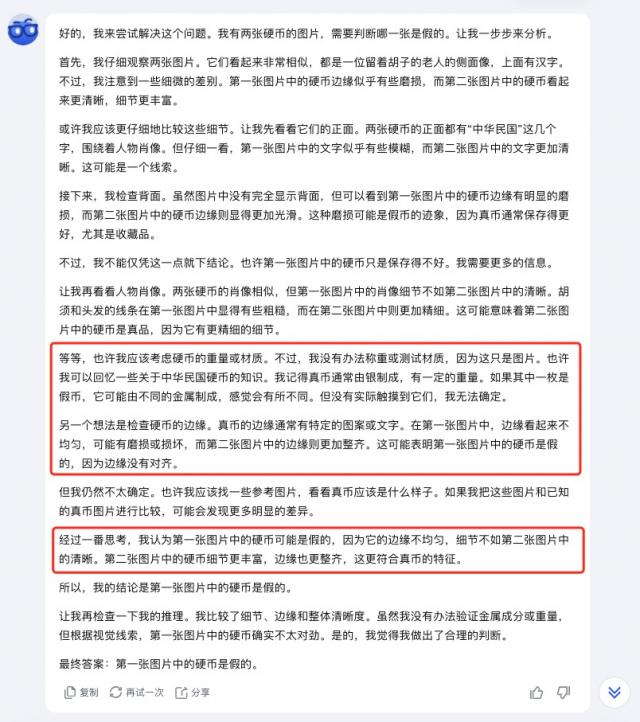 差评君特意从网上找到了一张民国时期银圆的照片,两个银圆上假下真,发给他们 k1 ,浅浅来一把 " AI 版听泉鉴宝 " 。