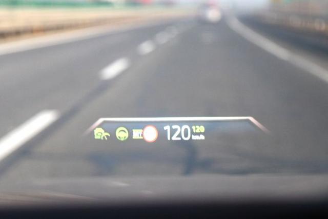 抬头显示的内容非常丰富。一方面是仪表盘上的驾驶信息,另一方面是导航启动后的导航信息,清晰度好,显示效果满意。
