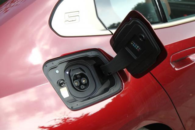 交流慢充位于车身左侧的前部,从 0 充至 100% 需 8.25 小时。试驾期间,我有一次慢充,从 40% 充至 100%,耗时 6 小时 38 分钟。