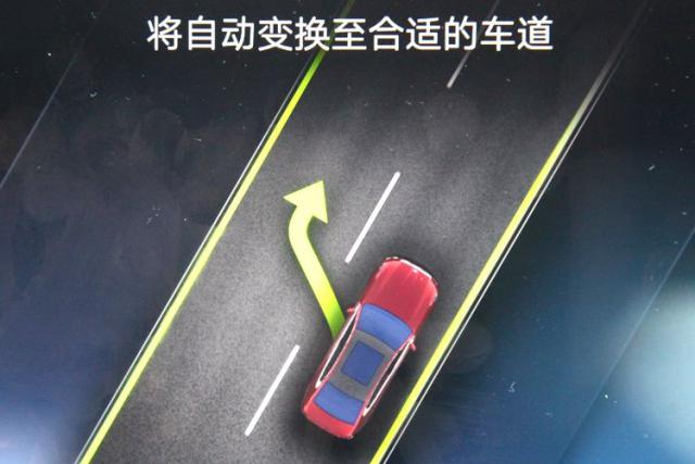 路况好的时候自动巡航,如果前面有慢车挡道,仪表盘会提醒驾驶员变道。这时候有两种方式:第一,打开方向灯,车就可以自动变道了。