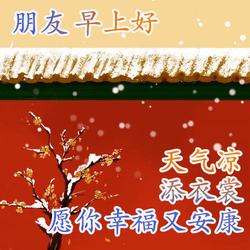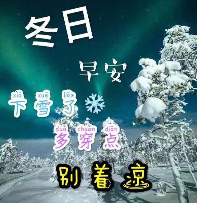 风吹落叶,雪花飘飘,寒冷的冬天来了。穿棉衣棉裤很重要。跑步锻炼身体很好。时刻注意不要感冒。我的祝福已经到来,保持温暖和温暖。祝寒冷的冬天心情愉快,大家早上好!