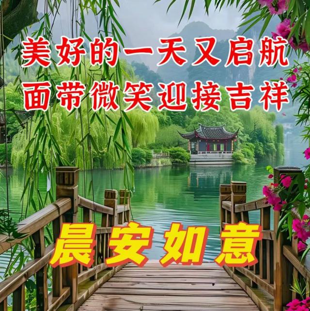 清晨的阳光轻轻拂过你的眉毛,微风轻轻吹过你的耳朵,晨雾轻轻照亮你的眼睛。美好的一天从这里开始。祝你心情愉快,精力充沛,一切顺利。早上好!