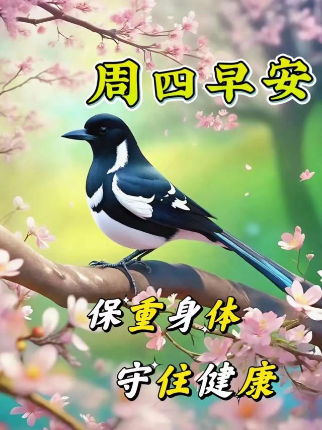 早上到,早上到,早上给你神丹妙药,早上响,头脑清醒,脸上充满晨光,精神好;晨风吹来,苦恼消失;晨露闪闪发光,信心满满。祝你每天幸福,周四健康。