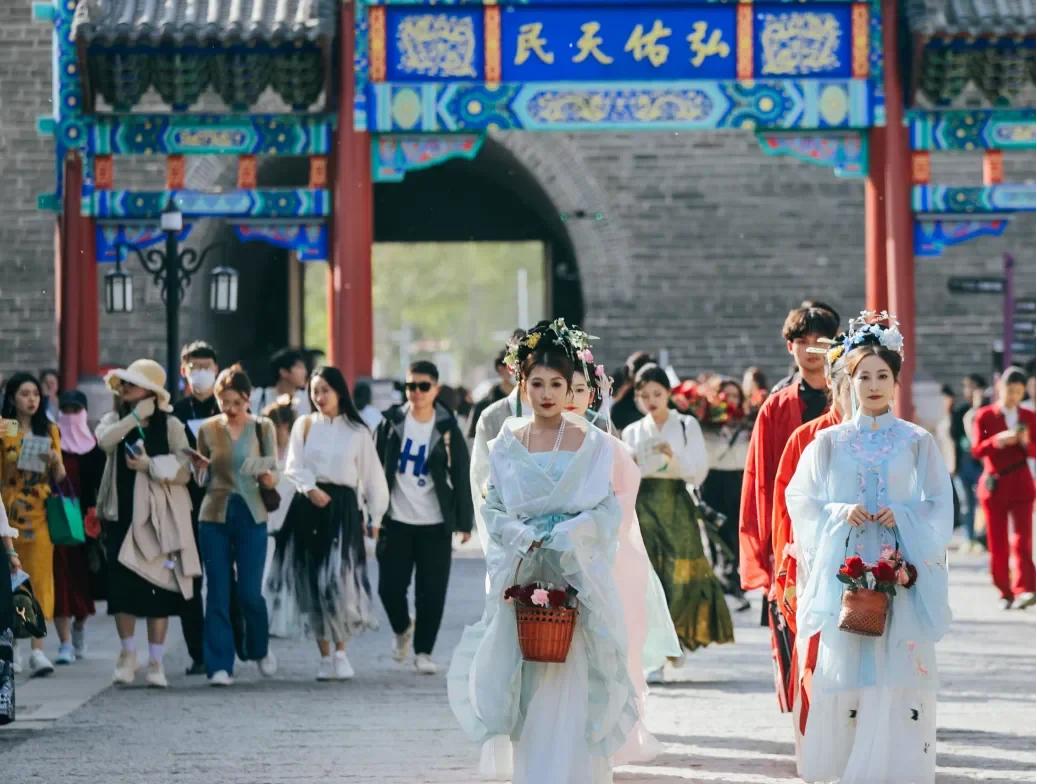 除了这些具有非物质文化特色的歌曲,穿着华丽服饰的演员们穿梭在古城的大街小巷,为游客带来了视觉和听觉的盛宴。阿胶文化与古城魅力完美结合,以伊尹、杨玉环、李时珍为原型的历史人物,让游客在欣赏表演的同时,感受到中医文化与民俗文化的交融与共生。