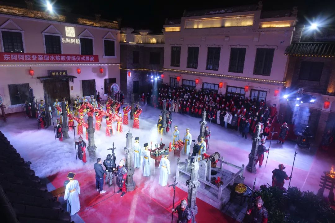 随着中医药文化城(东阿阿胶城)的大门慢慢打开,东阿阿胶跨越时代的传奇故事温馨上演。以独特的文化歌舞开始,200多个传统礼仪,如启井封、三献礼、吸水、打火、洗酒、献酒、献祭、献爵、读祝等。,复制了古代庄严的阿胶炼制场景,让你大饱眼福。