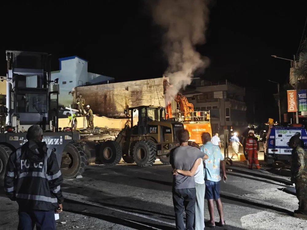 ↑12月17日晚,在瓦努阿图首都维拉港,救援人员在一个建筑倒塌现场工作(中国驻瓦努阿图大使馆手机照片) )。