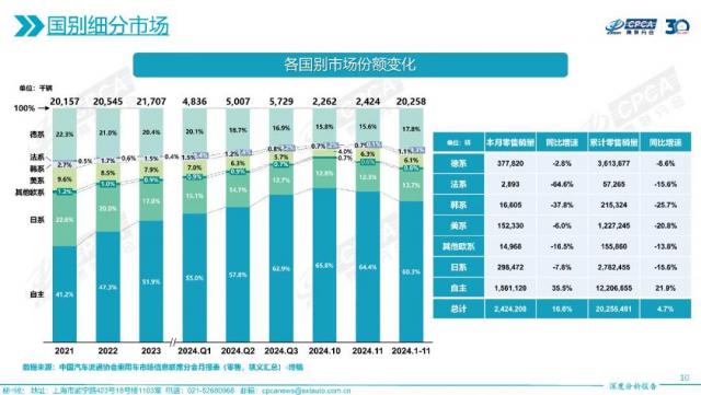 从中国市场来看,日系车面临的挑战更加明显。根据联合会的数据,2020年 2008年,日系车在中国的市场份额一度达到。 今年之前,24.1% 11 上个月,日系车在中国的市场份额下滑至中国 13.7%。与日本品牌市场份额节节败退相对应的是,中国自有品牌的市场份额不断上升,实现 60.3%。