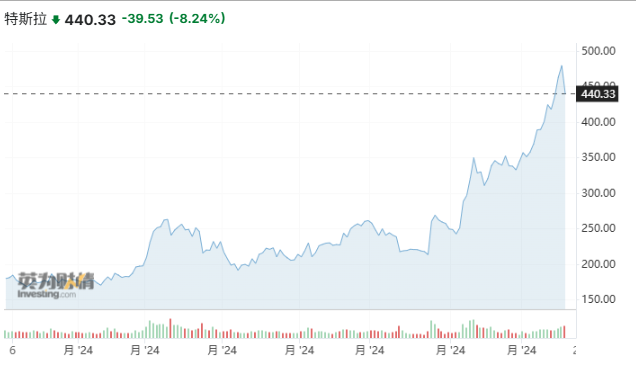 美联储主席鲍威尔周三在发布会上“放鹰”表示,美联储对降息持谨慎态度。特斯拉股价暴跌8%,打击了投资者的信心。在销售压力加大之前,该公司的股价创下了488.50美元的历史新高。