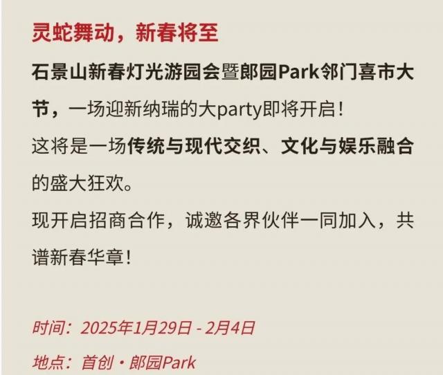 【石景山新年灯光游园会议 · 郎园 Park 邻门喜市大节】招募令——