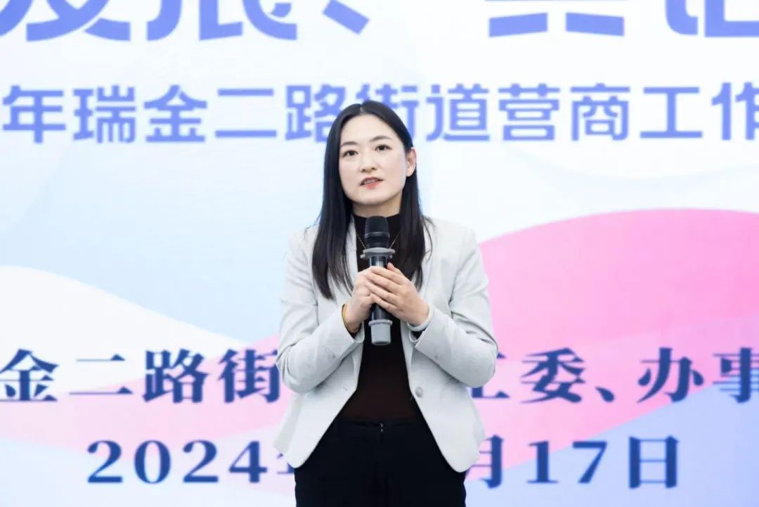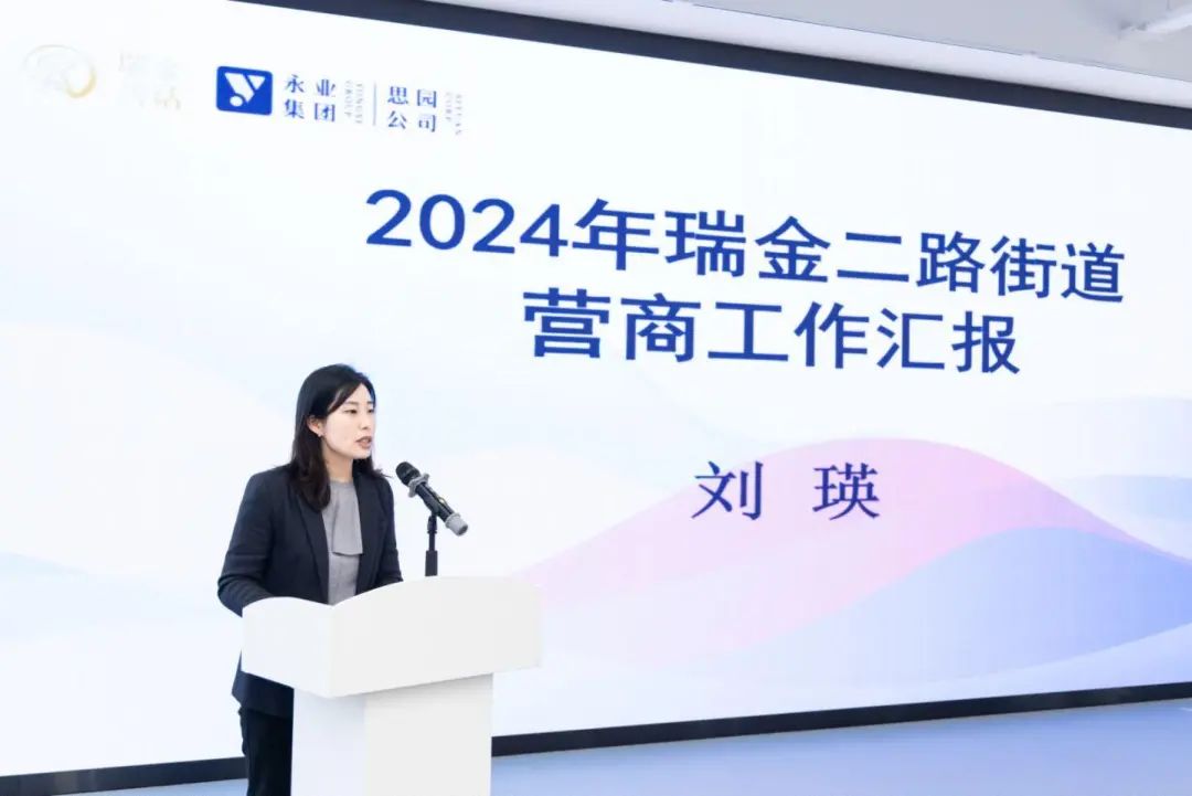 活动以瑞金二路街道“祥瑞多金”宣传片的播出拉开帷幕,与会者共同见证了街道一年来的经营成果。街道办事处副主任刘瑛详细报告了2024年的经营情况。在过去的一年里,在区委办部门的指导下,街道始终坚持以党建“红色引擎”赋能企业服务,与上海思园企业服务有限公司建立了“一中心、三大成员、四平台”商业工作体系 三是“党建”专业团队,+在商业模式中,构成了“人人招商,全员招商”的浓厚工作氛围。