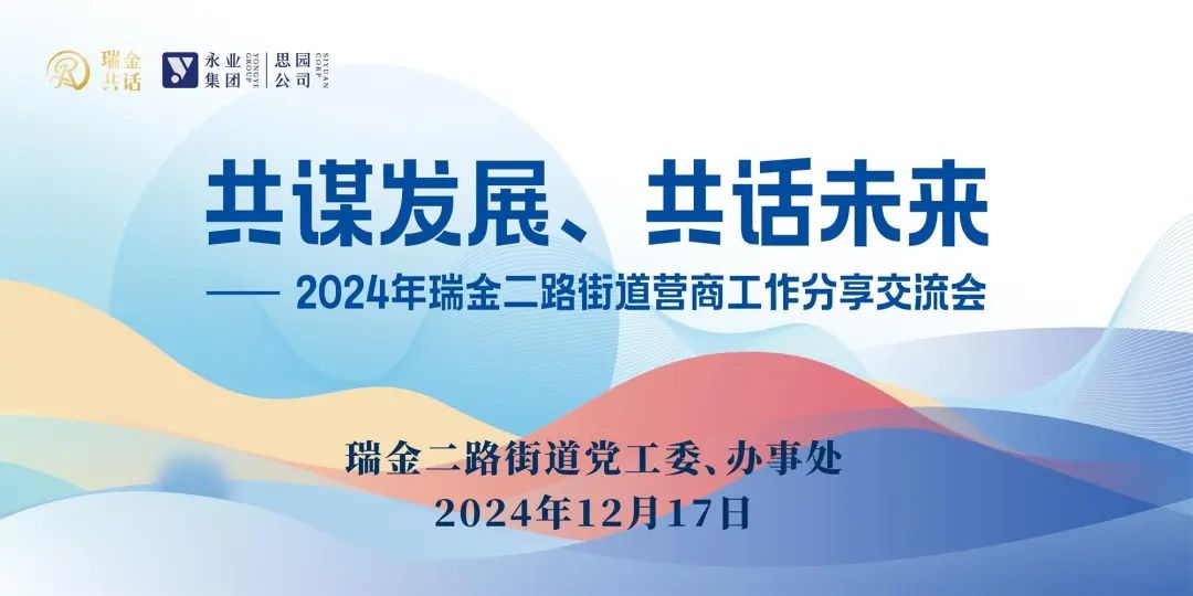 12月17日下午,瑞金二路街道举办了2024年营商工作交流会,主题为“共谋发展,共谈未来”。本次交流会以“共谈瑞金”的形式举行,汇聚了政府、公司、社区的各界人士,共同回顾了2024年营商工作的成果,探讨了未来的发展方向,进一步优化了营商环境,激发了市场活力。