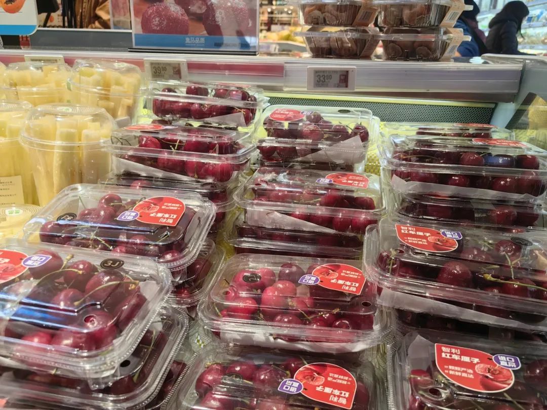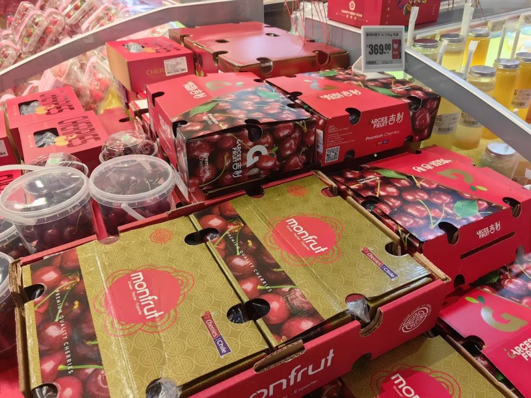 店长告诉记者,樱桃价格大幅下跌的原因是智利樱桃今年迎来了丰收年,估计整体产量比去年增长了40%-50%。与此同时,随着大量海运樱桃抵达香港,供应量大幅增加,运输成本也相应降低,导致今年樱桃价格远低于去年同期。