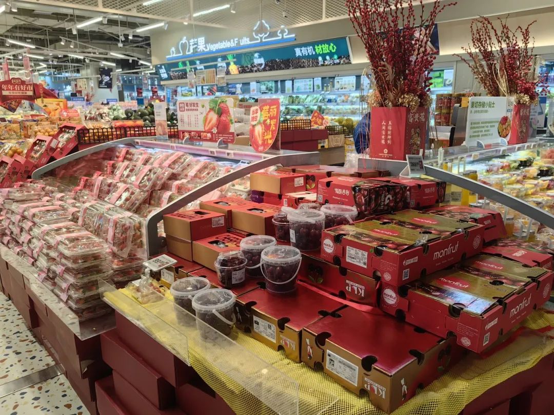 记者从盒马了解到,自12月以来,樱桃进入了销售旺季。“现在的价格很划算。JJJ的五斤比刚上市时便宜60元;JJ的五斤便宜100元。价格下跌后,很多市民都买了。这几天店里一直在备货。”工作人员告诉记者。
