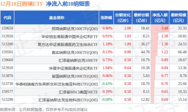 十二月十八日,跨境ETF净流入15.37亿元