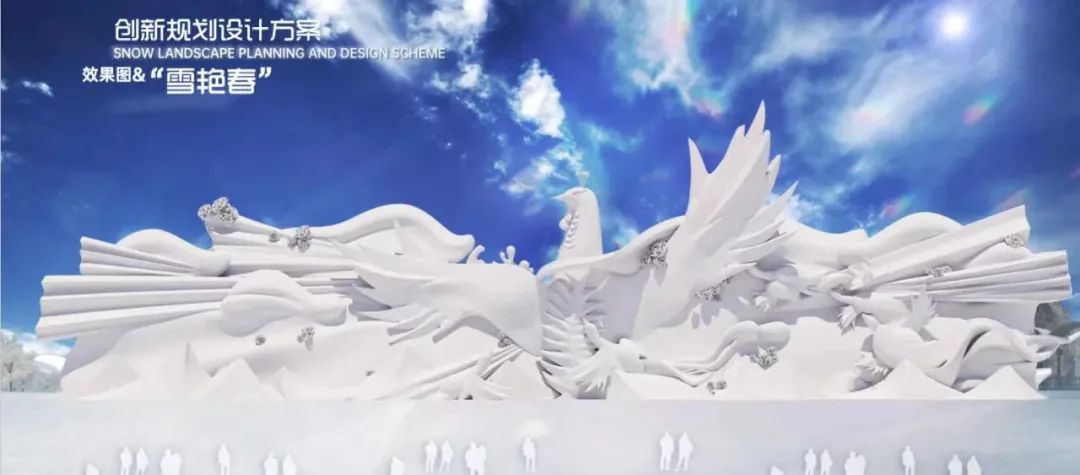 位于太阳岛雪博会太阳湖的主塑《雪艳春》,其创作灵感来源于成语 “百鸟朝凤”。主塑以鸟和梅花为核心元素,传达对美好春天的殷切期待,旨在让游客在寒冷的天气里欣赏到独特的春光、和谐和幸福以及充满希望的情感体验。