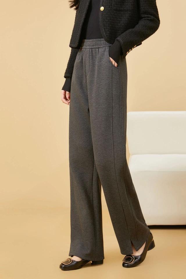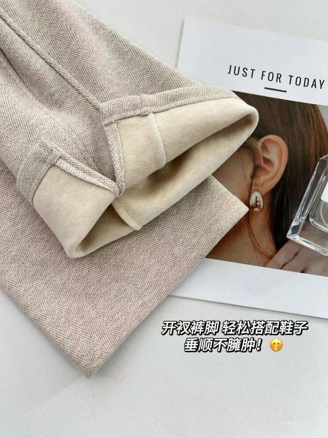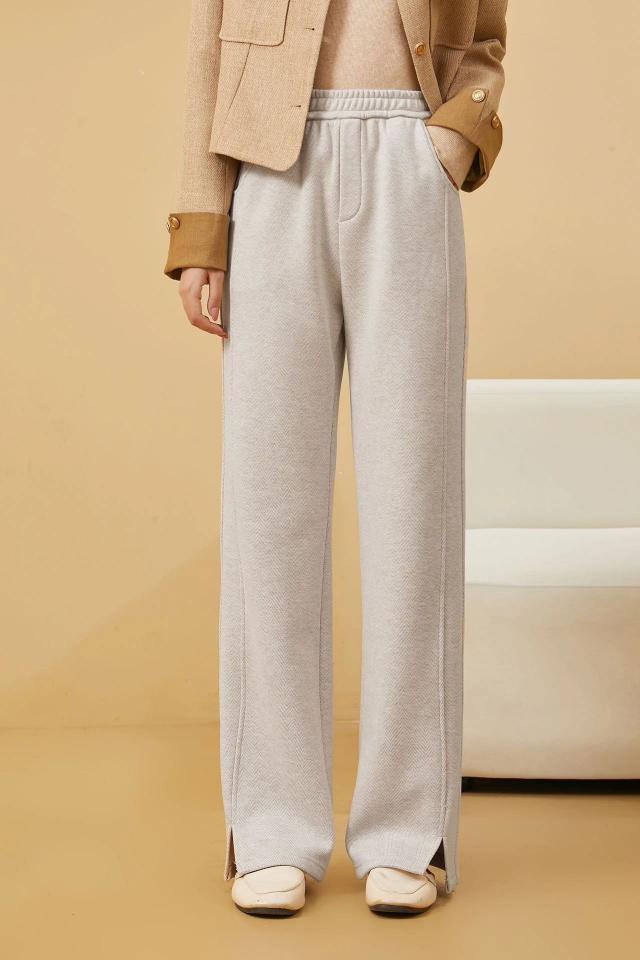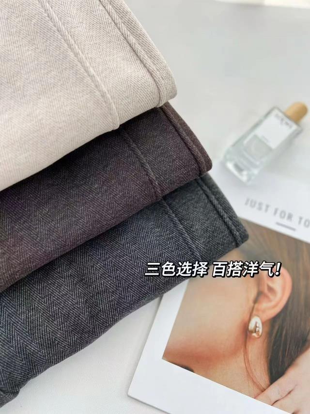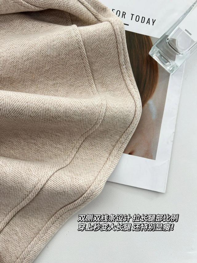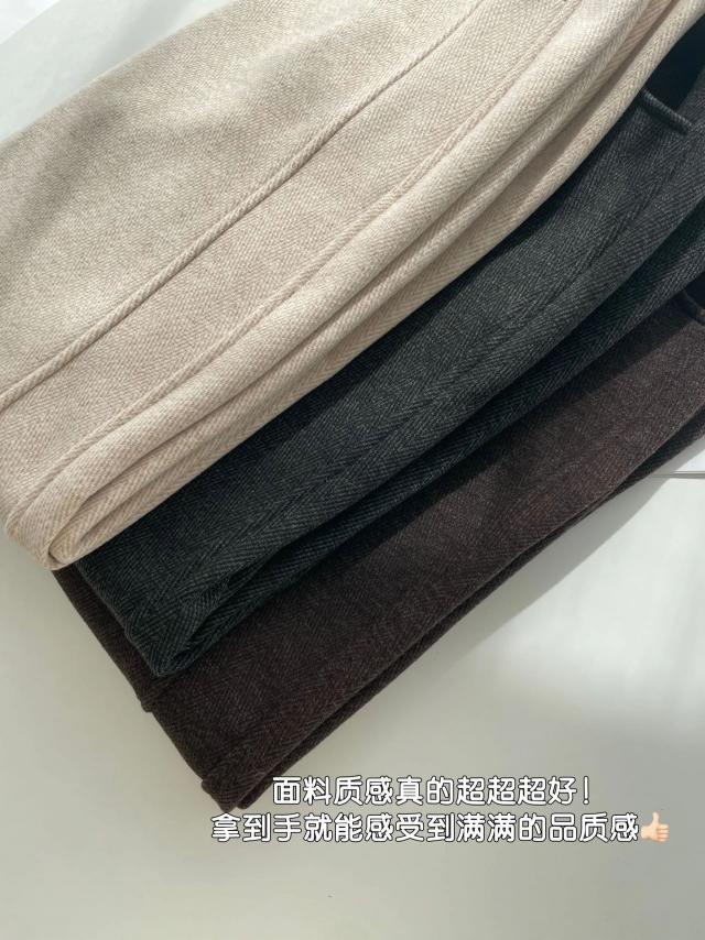 高重量 620g 人字纹羊毛蚕丝开衩直筒裤❗️