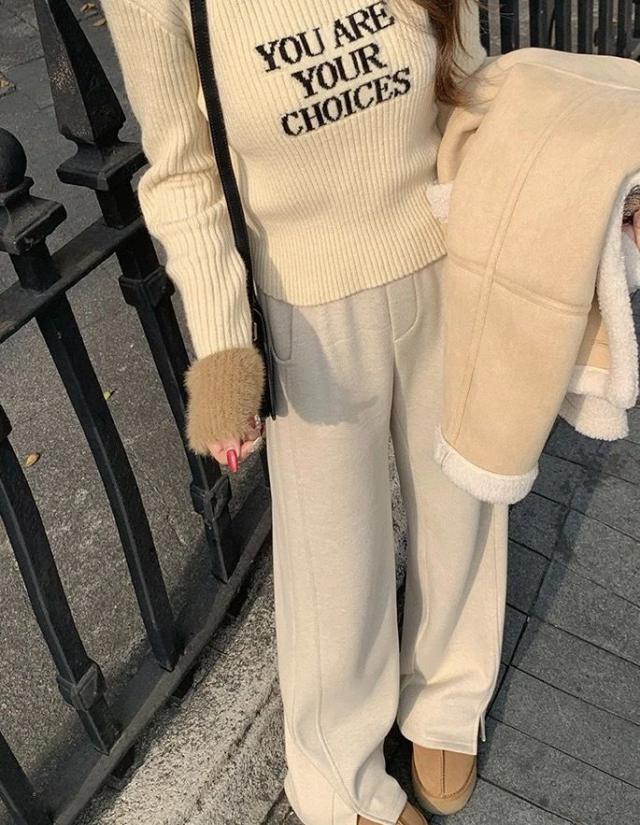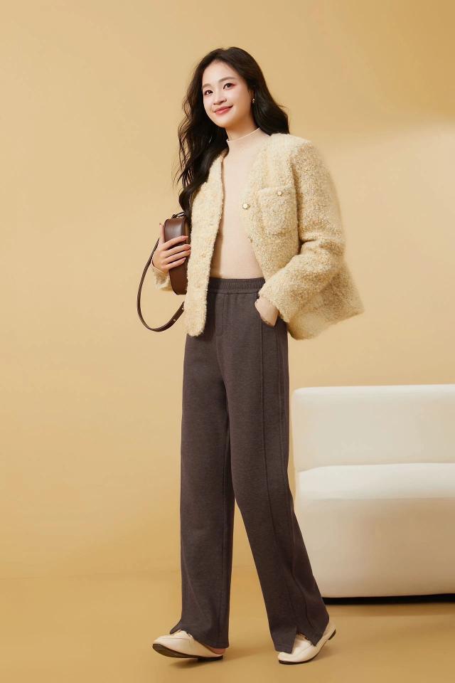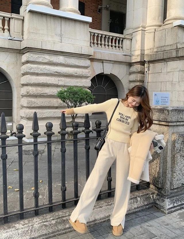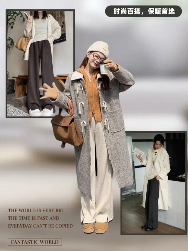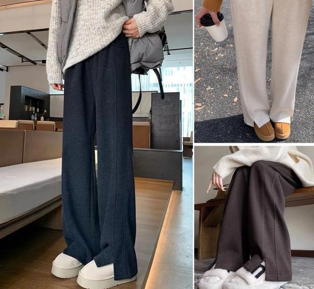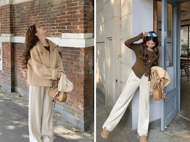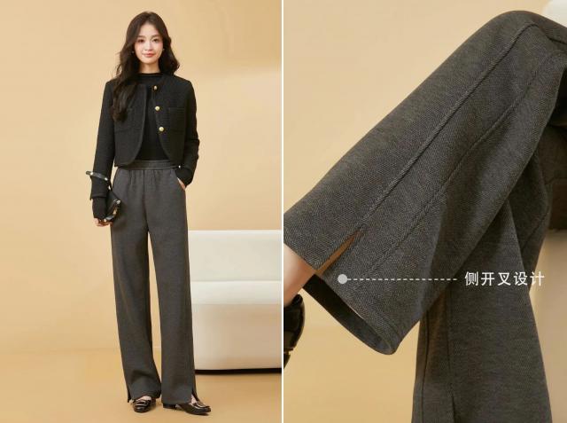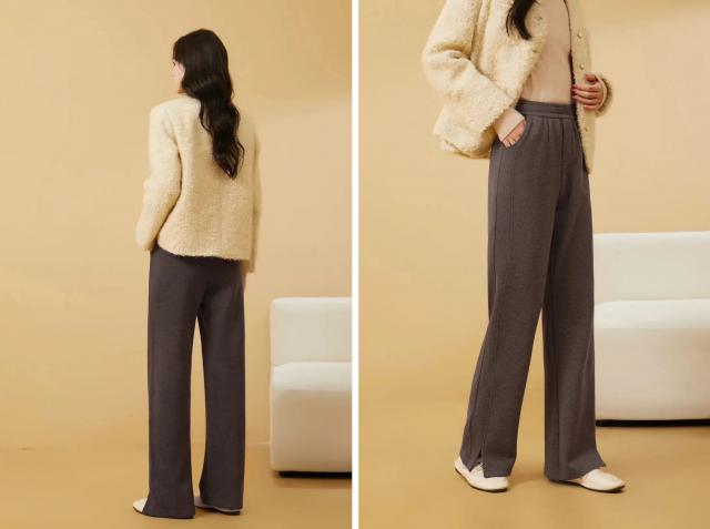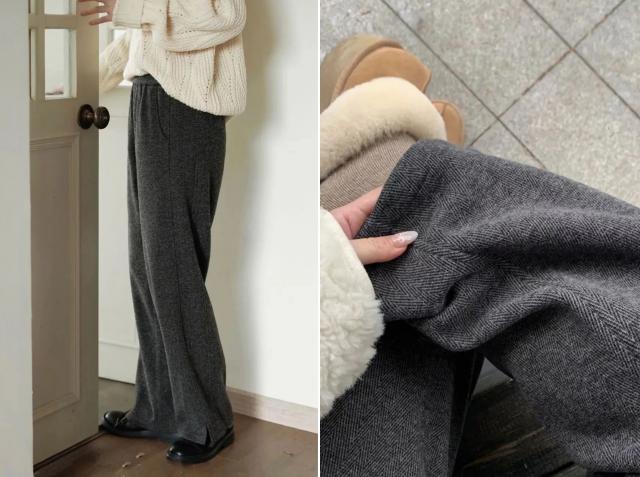 软糯细垂感好的羊毛蚕丝阔脚裤,保暖显瘦,上身非常昂贵!