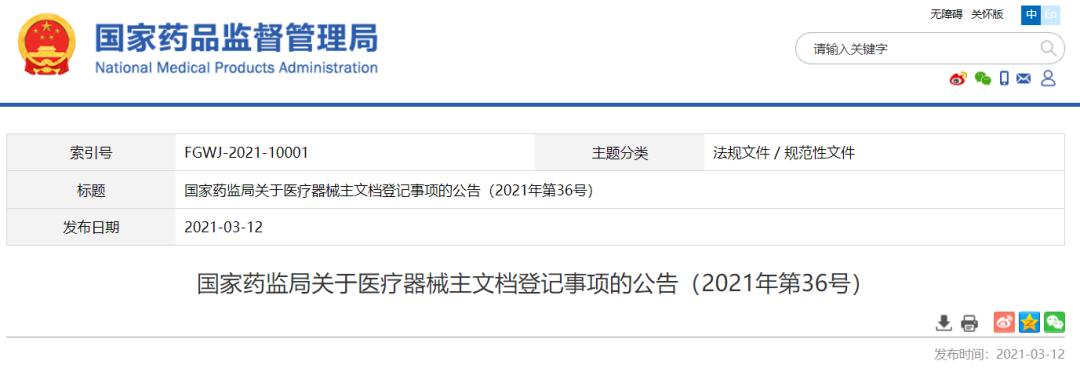 从主文档登记的角度来看,2021年3月,国家美国食品药品监督管理局发布《关于医疗器械主文档登记事项的公告(2021年第36号)》,正式建立医疗器械主文档登记制度,旨在进一步提高医疗器械审核质量,建立更加科学高效的审批体系。