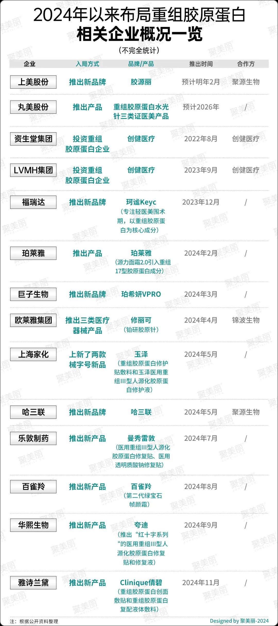 另外,在资本市场上,胶原蛋白的重组也受到资本、头部美容公司的青睐。