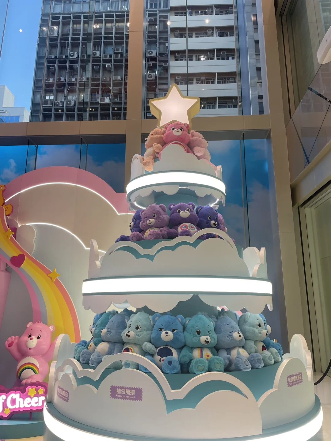 尖沙咀The今年圣诞节 ONE 与Care联手 Bears家族,呈现【The ONE x Care Bears Dreamland】。现场将汇聚数百位色彩斑斓的Care。 Bears家族成员,特别是在香港打造了第一个高达3米、治愈感十足的Share。 Bear,还有五颜六色的毛绒CareCare,36只65厘米高。 经典系列Bears精心堆积的4米高“Care 爱情联萌圣诞树,Bears。