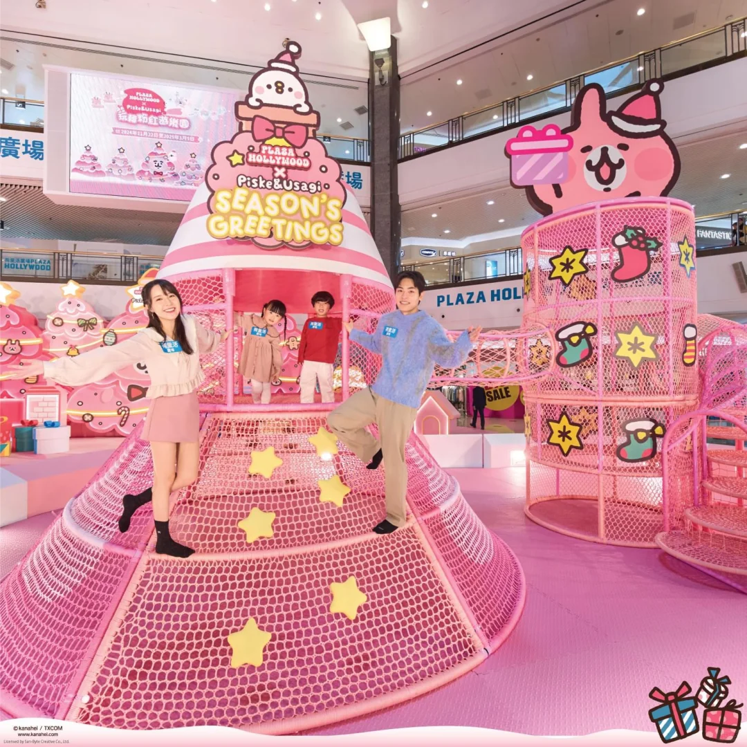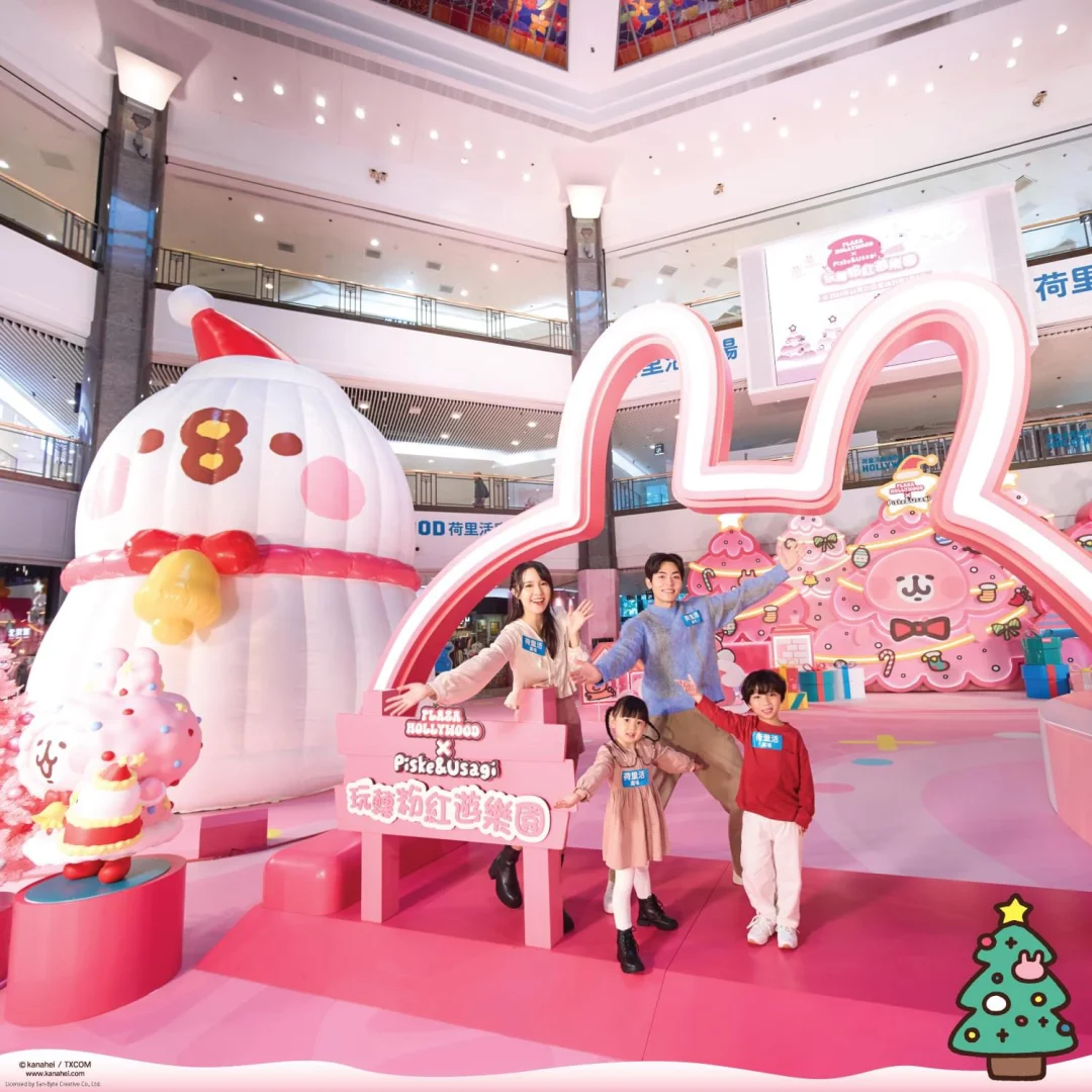 圣诞节期间,香港荷里活广场与日本超人气IP角色Kanahei's Small Animals,创造冬季限制「荷里活广场x Piske and Usagi『玩粉红色游乐园』」!少女心爆棚。