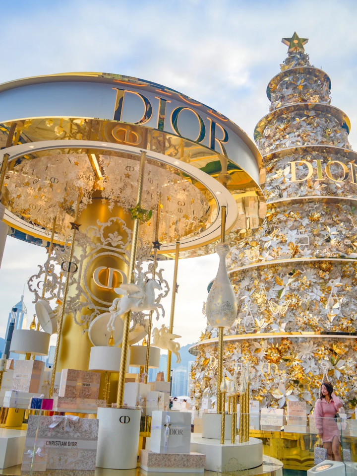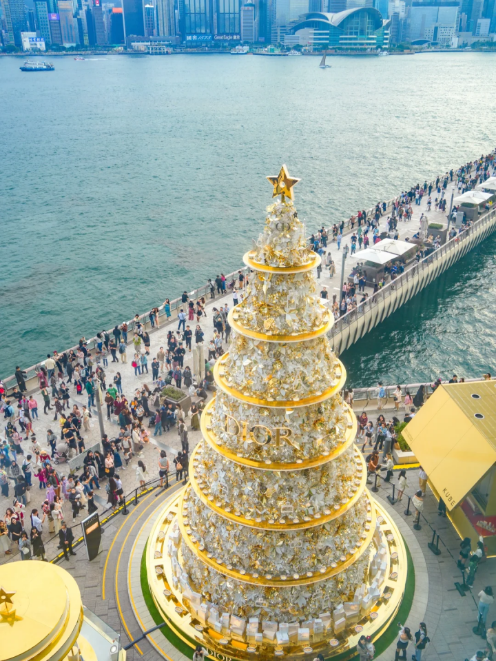 维港金圣诞树在K11MUSEA,在这里可以欣赏到维港无敌的海景,同时也可以欣赏到Dior的金圣诞树。