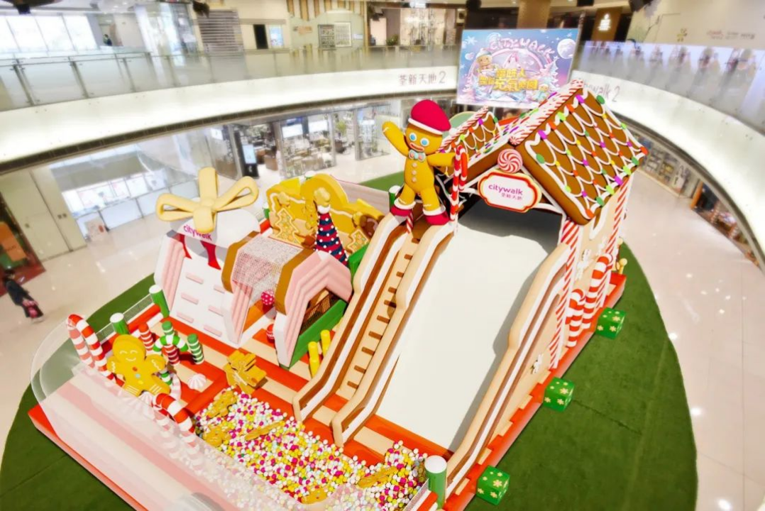 在这个圣诞季节,荃新世界第二期在商场中庭为孩子们创造了一个2000英尺的超梦(约186英尺)㎡)姜饼人主题充气公园,蹦床有五个玩耍区。参与者可以爬上3.5米高的糖果屋滑梯,跳进姜饼人的波波池。然后,他们在透明的管道中逃跑到巨大的泡泡屋打卡。姜饼人跳跃攀爬区,让孩子尽情放电。