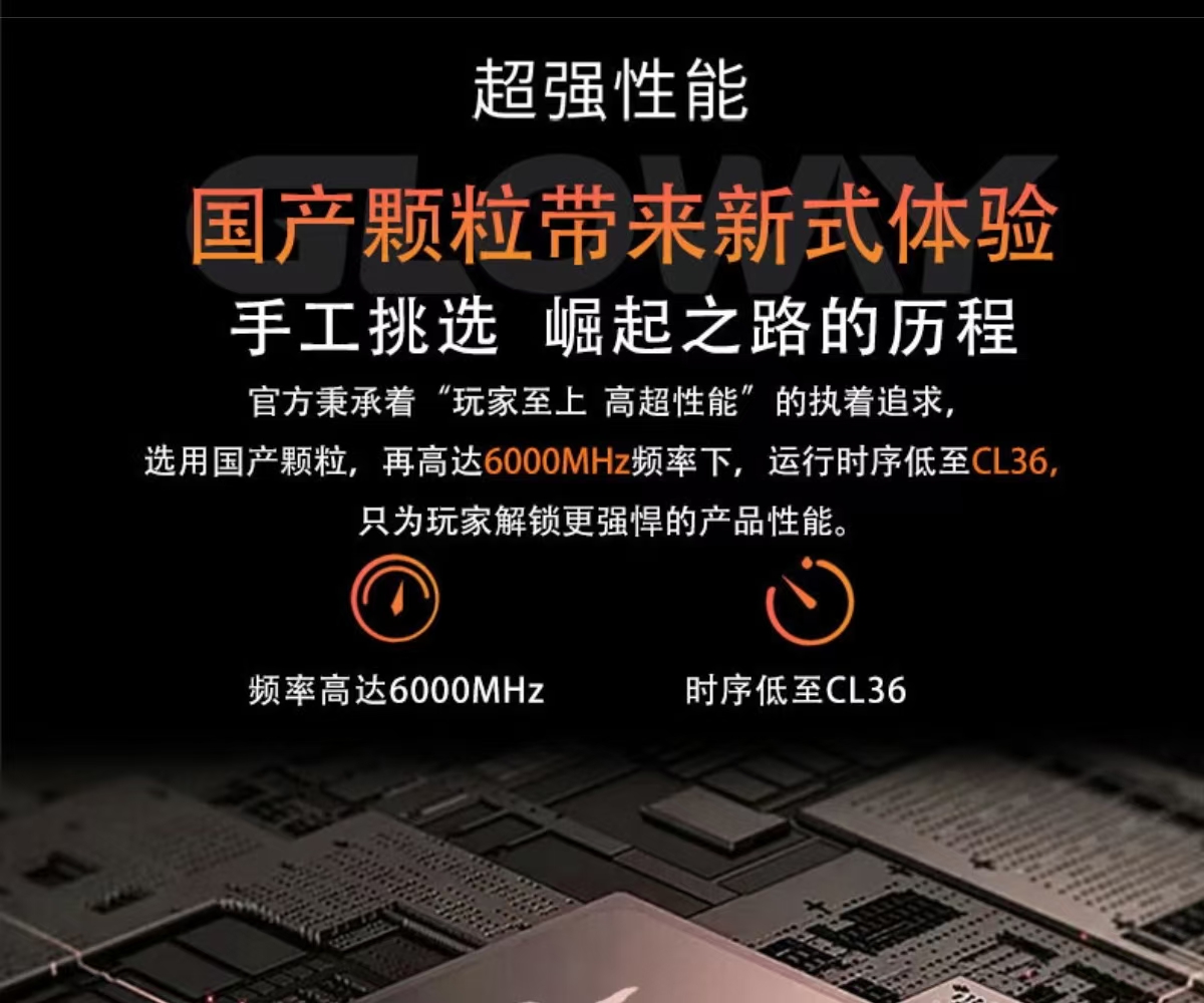 金百达(银爵系列)和光威(龙武-游戏系列)推出的2款6000CL36规格16*2套,台式电脑专用,频率为6000MHz。(XMP),都支持英特尔XMP 3.0和AMD EXPO超频,时序为相同的CL36,工作电压分别为1.35V、1.4V。