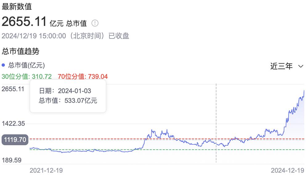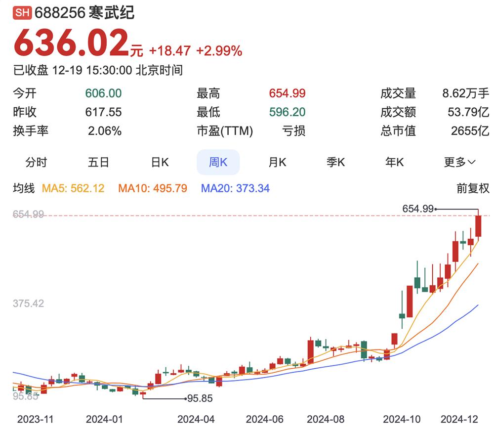 ▲2024年寒武纪股价暴涨,总市值超过2600亿元