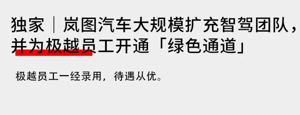 未来汽车Daily,岚图汽车大规模扩大智能驾驶队伍,并为极越员工开放「绿色通道」