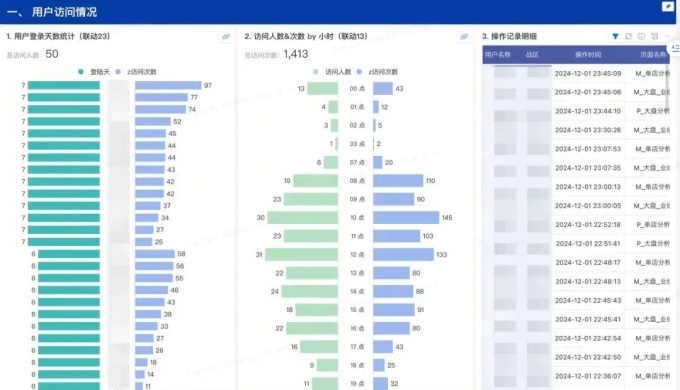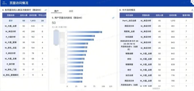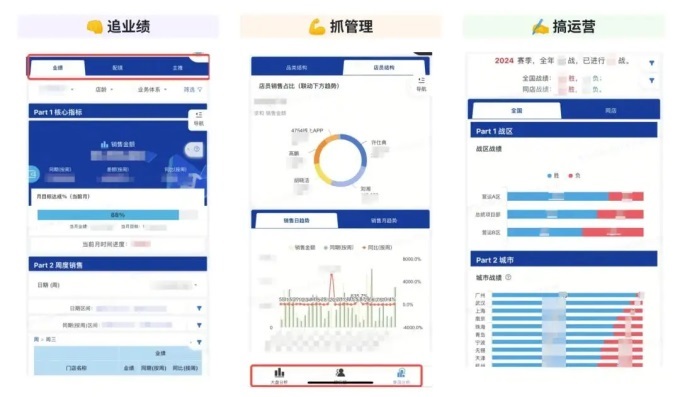 第二,注重管理。这里还有三个场景。「大盘分析」「排行榜」「门店分析」。尤其是门店分析,对于营销管理尤为重要。他们花很多时间访问商店,他们需要立即了解每个商店的经营状况。我们设计页面是为了让他们快速掌握每家店的前世,从而做出及时的战略决策。