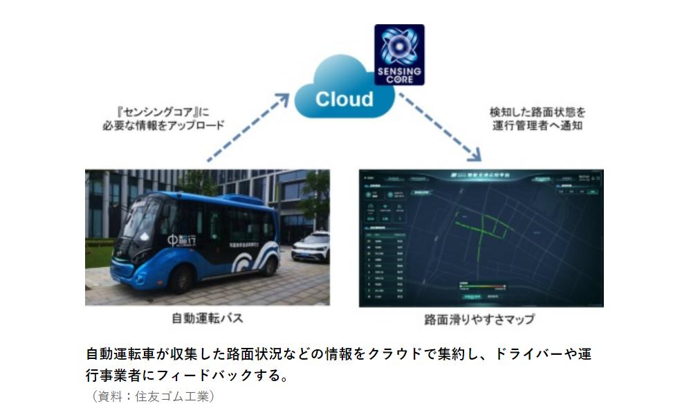 相城区完善的智能汽车联网生态系统,也吸引了日本汽车供应商迫切需要转型。由于在中国市场份额明显下滑,日本主机厂位于金字塔顶端,由于形势的变化,供应端日企开始智能化转型。举例来说,住友橡胶中国有限公司,即Dunlop(邓禄普)橡胶轮胎制造商,通过摸索,开发出“Sensing Core“传感技术是将行驶过程中车轮的速度信息、车轮负荷、轮胎磨损情况、路况检查等传递到云端,然后通过“路面湿滑度地图”提供给自动驾驶操作人员,再传递给行驶车辆。帮助车辆自动避免道路危险。日经也在2023年6月报道了该公司的创新。