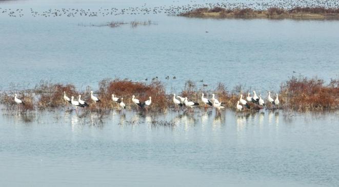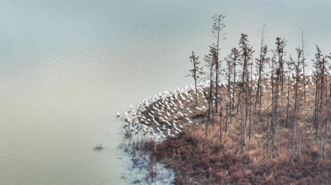 近年来,我县加大了对黄陂湖湿地的生态环境保护力度,大大改善了4万多亩湿地的生态环境。每年冬天,大量的候鸟,如东方白邈、小天鹅、花脸鸭等。,准时归来,齐飞的壮观场景成为黄陂湖湿地最美的风景。