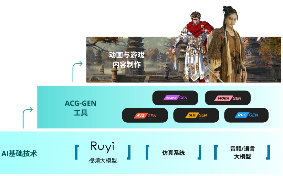 在图森未来的想法中,Ruyi是一个通用的模型。在Ruyi之上,图森计划开发各种ACG-GEN工具(即与动画和游戏相关的垂直技术),以服务于动画和游戏的内容制作。