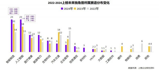 从近三年上市公司跑道分布的变化来看,智能制造和人工智能赛道的企业数量大幅增加,从 2022 年 14 家 13 家庭,今年都增长到了 23 家庭,成为增长最快的两条跑道,这种增长趋势反映了市场对自动化、智能化解决方案的高需求。