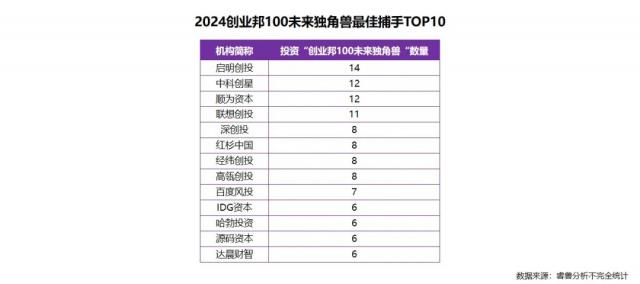 ● 未来独角兽捕手:启明创投等投资机构助力独角兽企业。