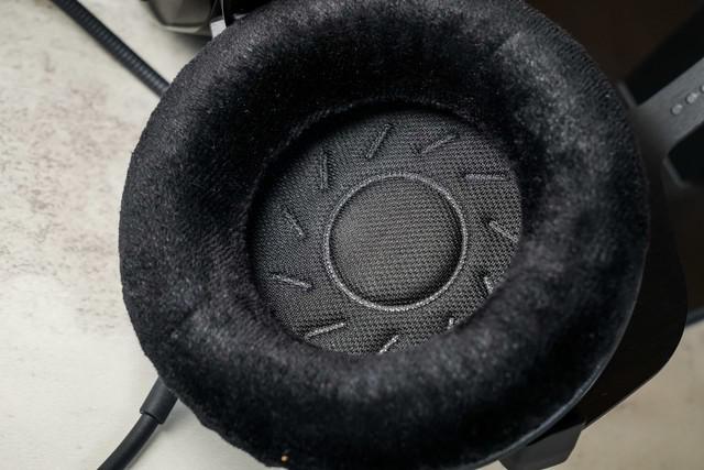 拜雅 MMX300PRO 选择舒适的天鹅绒包裹,内部填充物是记忆棉。对于爱油耳朵的朋友来说,天鹅绒比蛋白皮友好多了,既省去了油腻的触感,又减少了油渍和汗水对耳罩的快速腐蚀。此外,耳罩内侧的直径约为 5.5cm,佩戴时可以使耳朵和耳罩处于空心状态,尽量避免游戏对耳朵的压迫感。