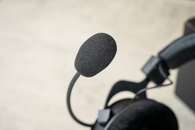 拜雅 MMX300PRO 麦克风位于左侧,采用固定设计,无法拆卸。但麦克风可调范围广,鹅颈管定型弯曲性能好,不妨碍日常使用。并且方便用户根据需要调整麦克风拾音位置。