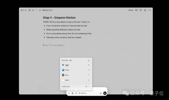 最终,OpenAI 还支持在语音模式下协调其它应用程序,包括 Notion、Apple Notes 等。