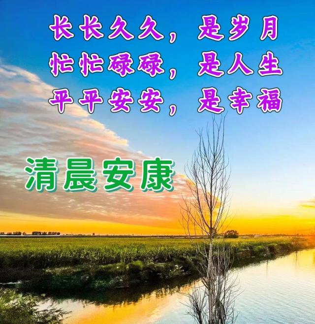 幸福是一天的主题;健康是一生的追求;幸福是一个美好的愿望;让我们一起守护快乐、幸福、健康的每一天!深浅的人生道路,平平淡淡的走着,风风雨雨都笑对了,健康终究会赢。新的一天,祝大家幸福、健康、安全!早上好!