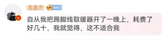 “国家电网报”帐号做了相关的耗电试验,电热油汀、踢脚线加热器等能够实现大规模室温升高的家用电器一般都不低。
