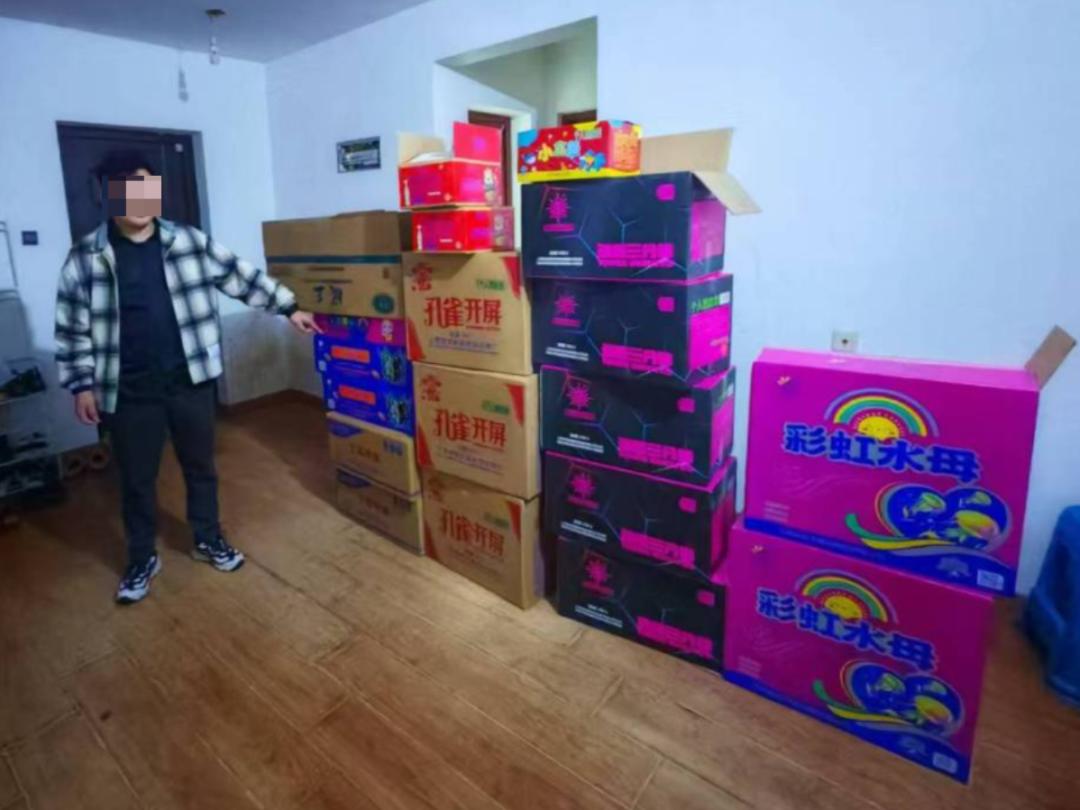 经调查,唐某将烟花和竹子存放在小区住宅楼销售,派出所民警依法扣押。目前,唐某因非法存放危险物质被公安机关行政拘留,案件仍在进一步追查中。
