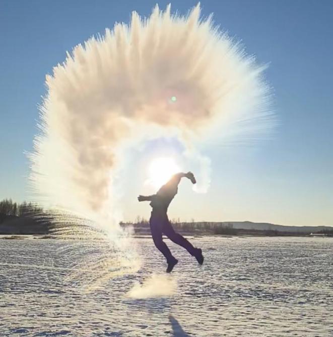 打卡照片“泼水成冰”