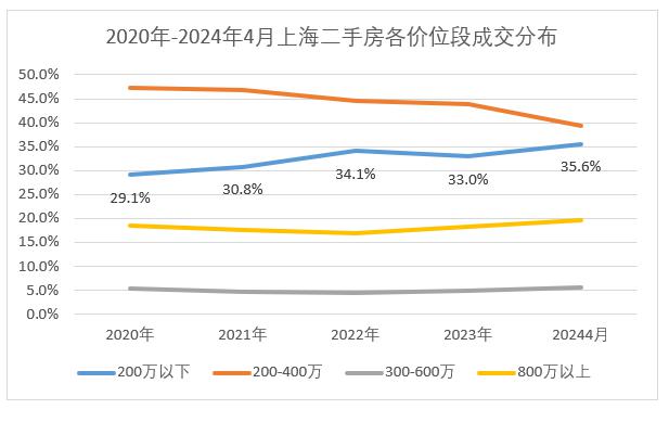 根据一房一万的统计,尽管 200 到 400 万元的价格段,还是上海二手房交易的大头。