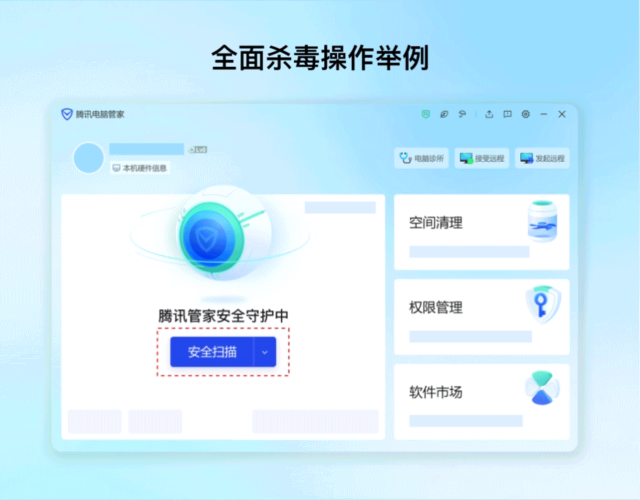 微信安全中心提示:如果在电脑上打开异常内容或可疑行为,需要及时退出电脑登录的重要账号,对电脑进行全面杀毒,确保木马程序在正常启用电脑前被清洗干净。在日常工作和生活中,可以定期使用杀毒软件安全扫描电脑环境,清理潜在风险。以电脑管家为例,全面杀毒可以轻松完成几个步骤。