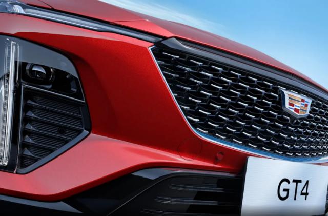 凯迪拉克就外观设计而言 GT4 拥有当前家族最新的设计风格,大型熏黑盾形中网,分体式 LED 大灯,整体低趴的造型,看起来很有动感。