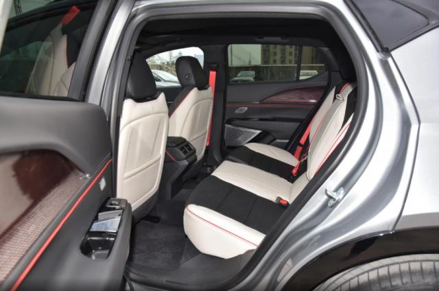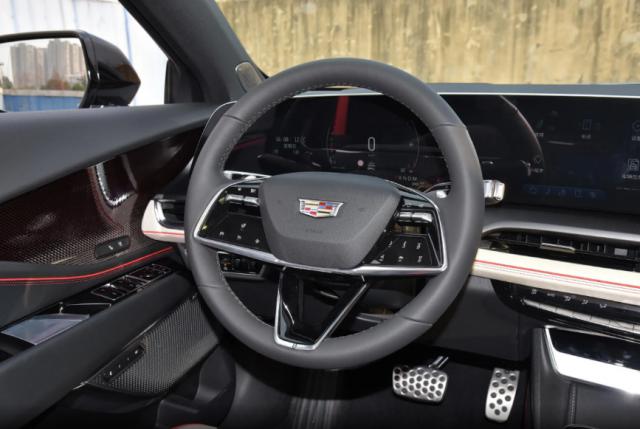 内饰是凯迪拉克现阶段最新的家族化设计,环抱式游艇布局,整个系统标配 33 英尺双屏看起来充满科技感,标配高通骁龙。 8155 汽车机芯片,整体操作流畅性有保证。